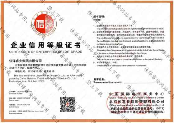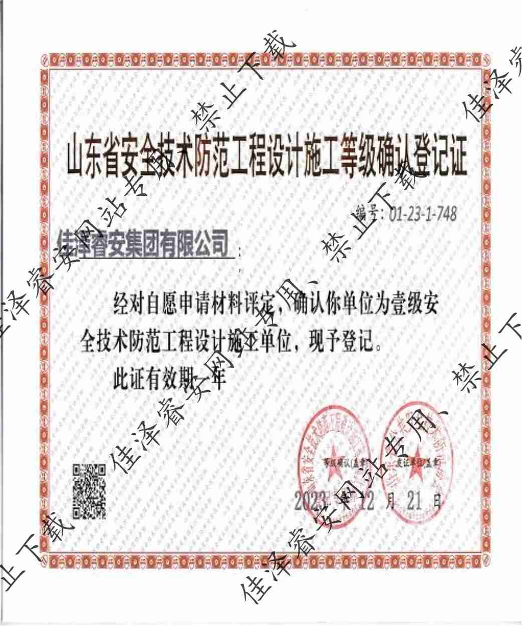 安全技術(shù)防范工程設(shè)計(jì)施工等級(jí)確認(rèn)登記證書(shū)