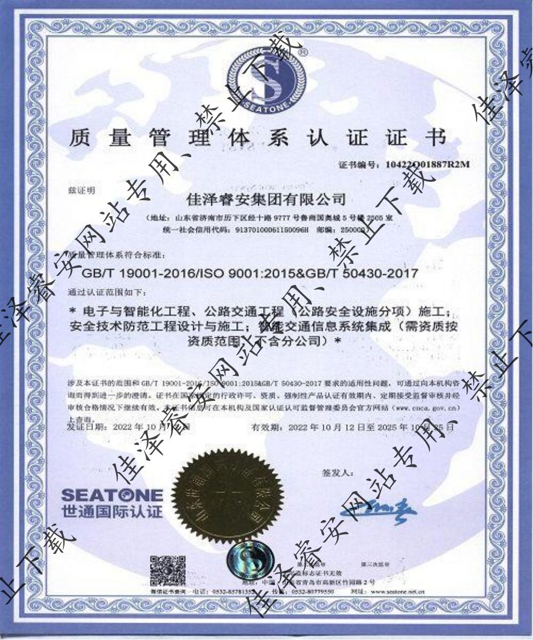 質(zhì)量管理體系認(rèn)證證書(shū)