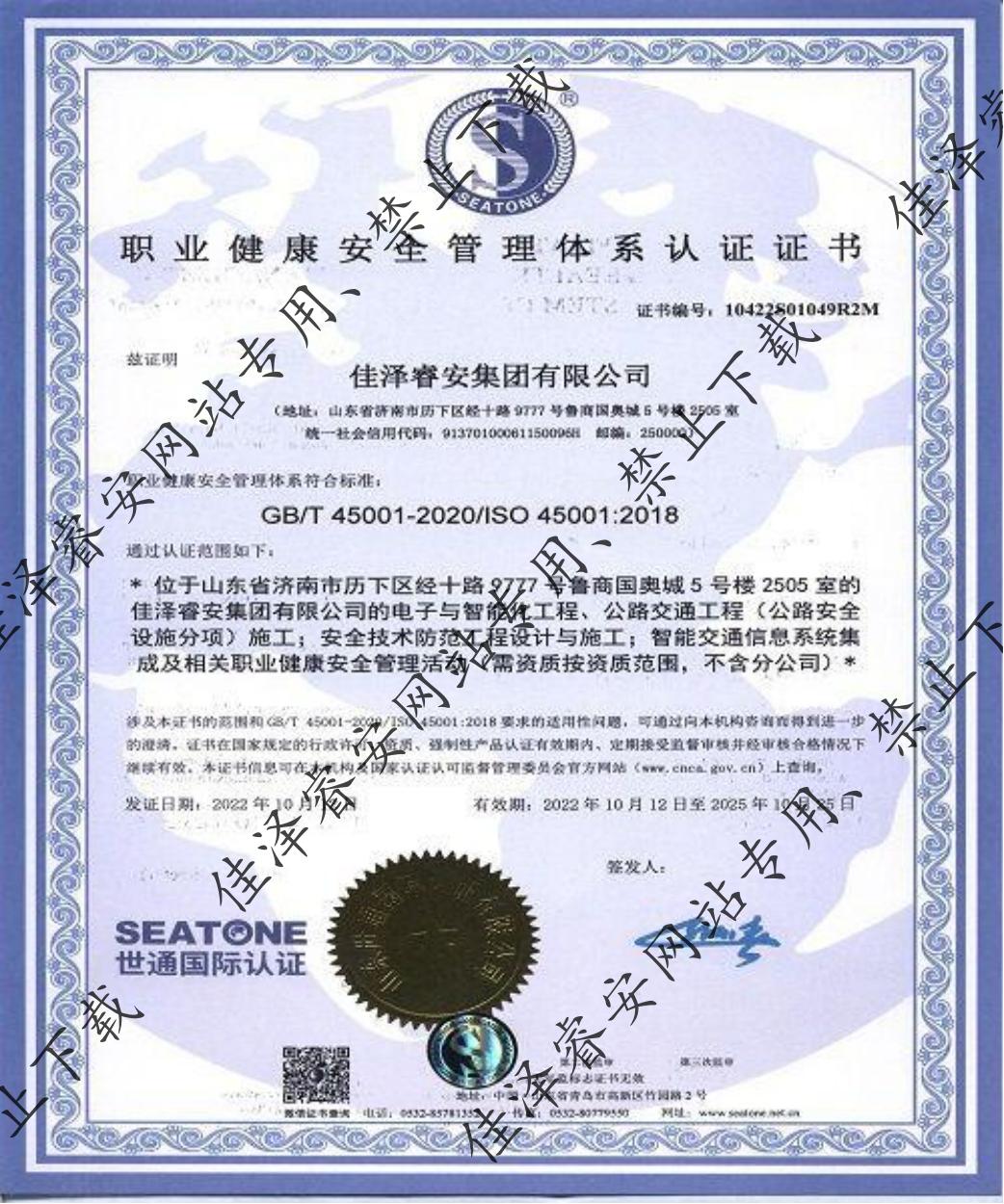 職業(yè)健康安全管理認(rèn)證證書(shū)