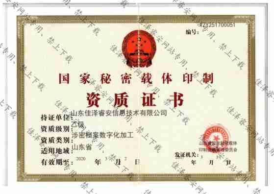 國(guó)家秘密載體印制資質(zhì)證書(shū)