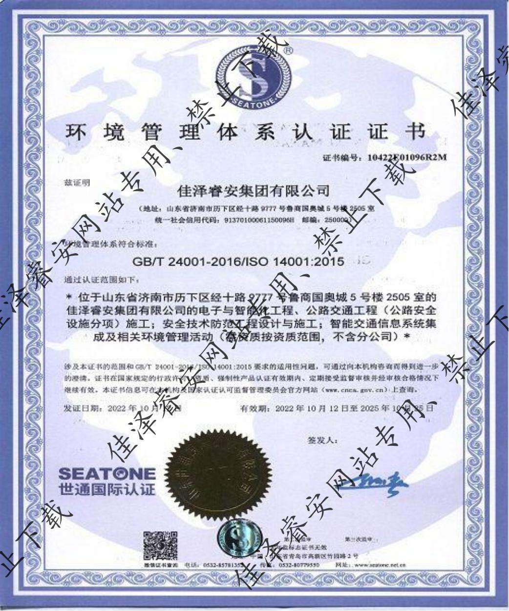 環(huán)境管理體系認(rèn)證證書(shū)