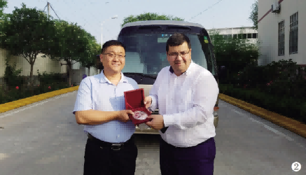 佳澤睿安集團董事長邵輝向烏茲別克斯坦國家道路交通建設(shè)委員會主席贈送上合峰會紀念品